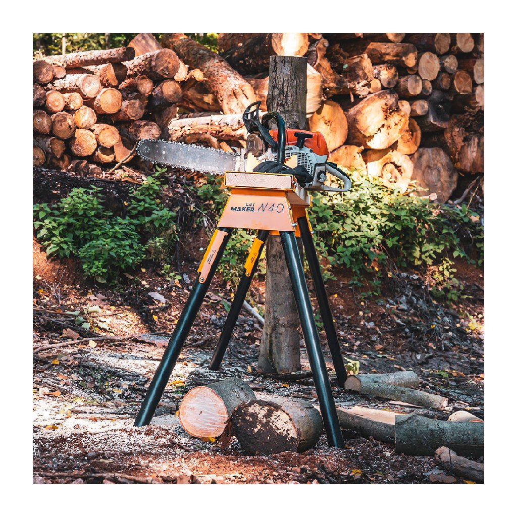 Für anspruchsvolle Aufgaben gebaut – der W40 trägt bis zu 150 kg Materialgewicht und hält damit auch schwere Stämme sicher. Trotzdem bleibt er mit nur 10 kg Eigengewicht leicht und mobil. In wenigen Sekunden einsatzbereit und ebenso schnell wieder verstaut. Für den Transport oder die Lagerung kann er komplett zerlegt werden. Präzises und sicheres Arbeiten mit minimalem Aufwand. Sie können ihn zusätzlich verstärken, indem Sie mehrere Bohlen übereinanderlegen, oder die Länge durch längere Bretter individuell erweitern.