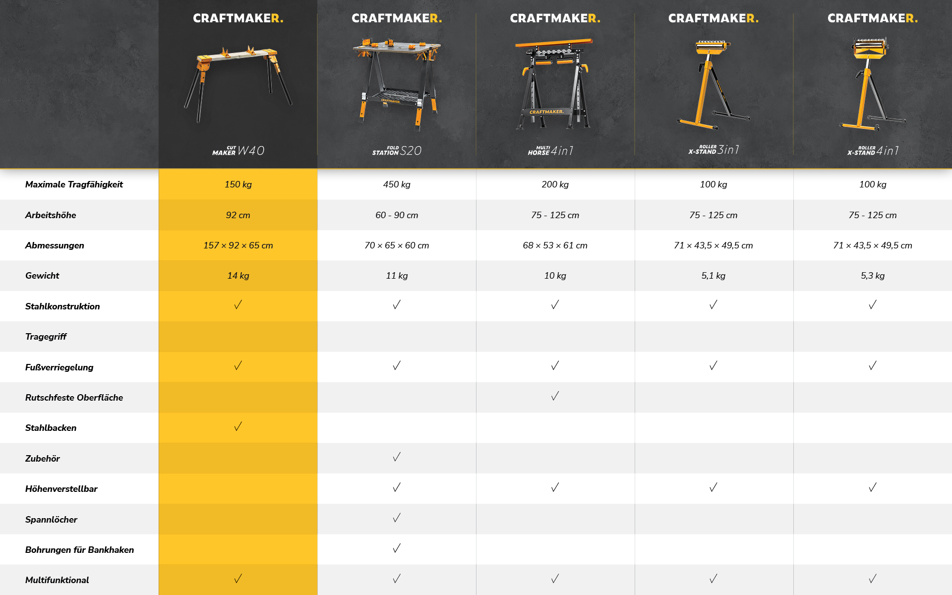 CRAFTMAKER Cut Maker W40 – Multifunktionaler Sägebock & Arbeitsbock