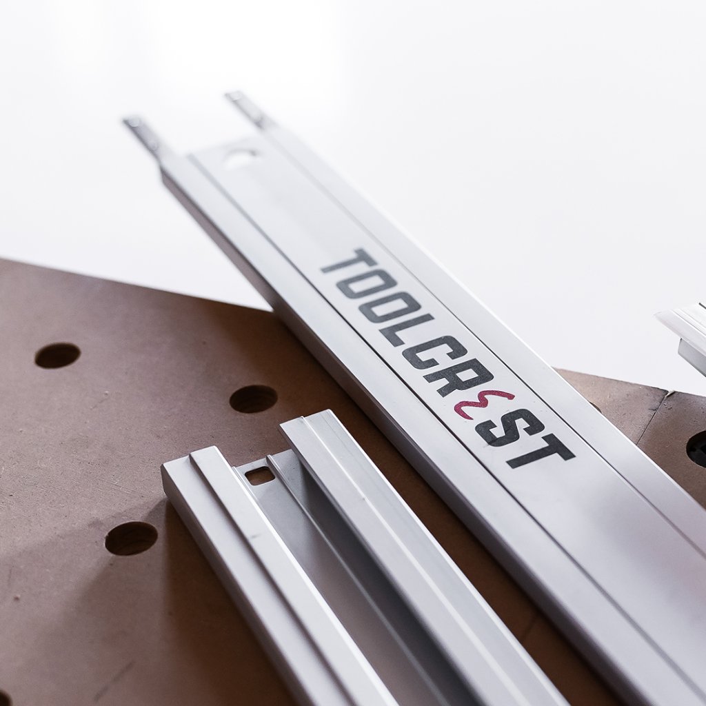 Ein besonderes Merkmal ist die integrierte, verschiebbare Klemme an der Unterseite. Mit ihr lässt sich die Schiene schnell und sicher auf dem Werkstück fixieren, ohne dass zusätzliches Zubehör benötigt wird. Dies erleichtert das exakte Zuschneiden von Holzwerkstoffen und Plattenmaterial erheblich. Die Schiene ist mit der Basis-Führungsschiene von TOOLCREST kompatibel und kann als Verlängerung oder eigenständig genutzt werden.