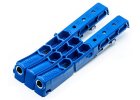 Die KREG® Montageschablone zum Bohren von Befestigungslöchern für Schubladenauszüge ist aus strapazierfähigem Kunststoff gefertigt, hat Auszugssperren und wird als Paar geliefert.