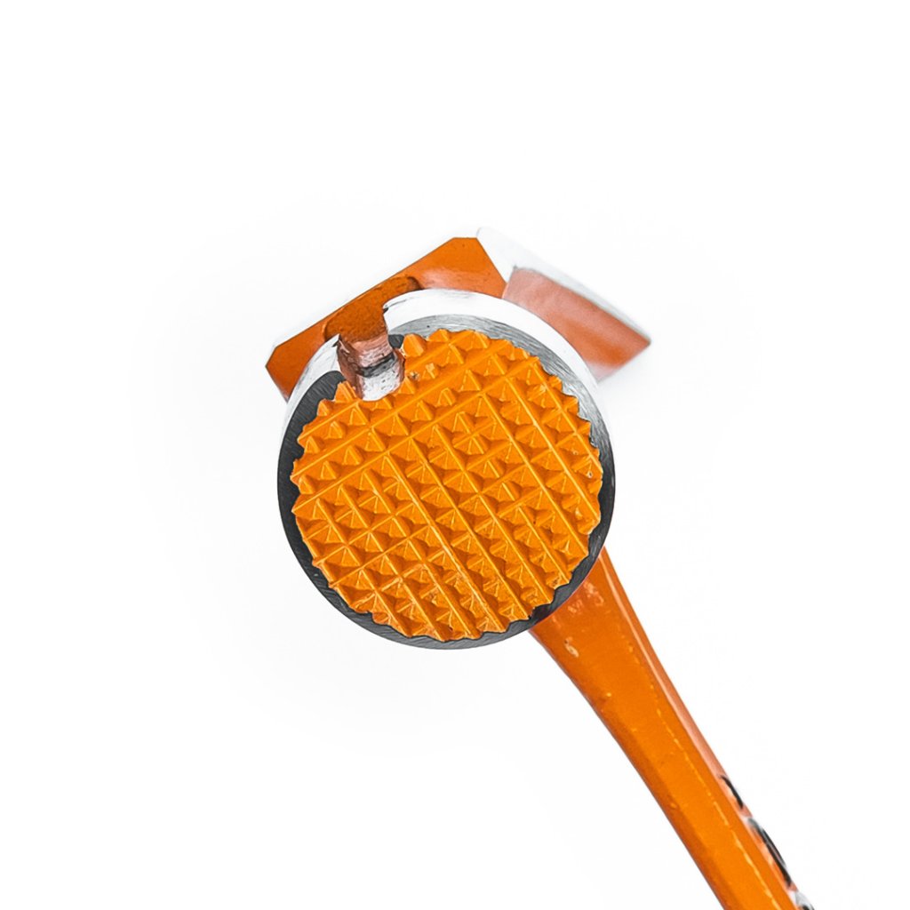 Hammer und Griff sind aus einem Stück hochwertigem Stahl gefertigt. Der Griff ist mit einem Kunststoffgriff mit einer gummierten rutschfesten Oberfläche ausgestattet, die Stöße absorbiert und angenehm zu halten ist. Schlagflächendurchmesser ⌀ 29 mm. Ideal für kleinere Abbrucharbeiten, Dacharbeiten und Holzbau. Gemahlene Nutung auf der Schlagfläche des Hammers verhindert das Abrutschen vom Nagel, was das Hämmern sicherer macht.